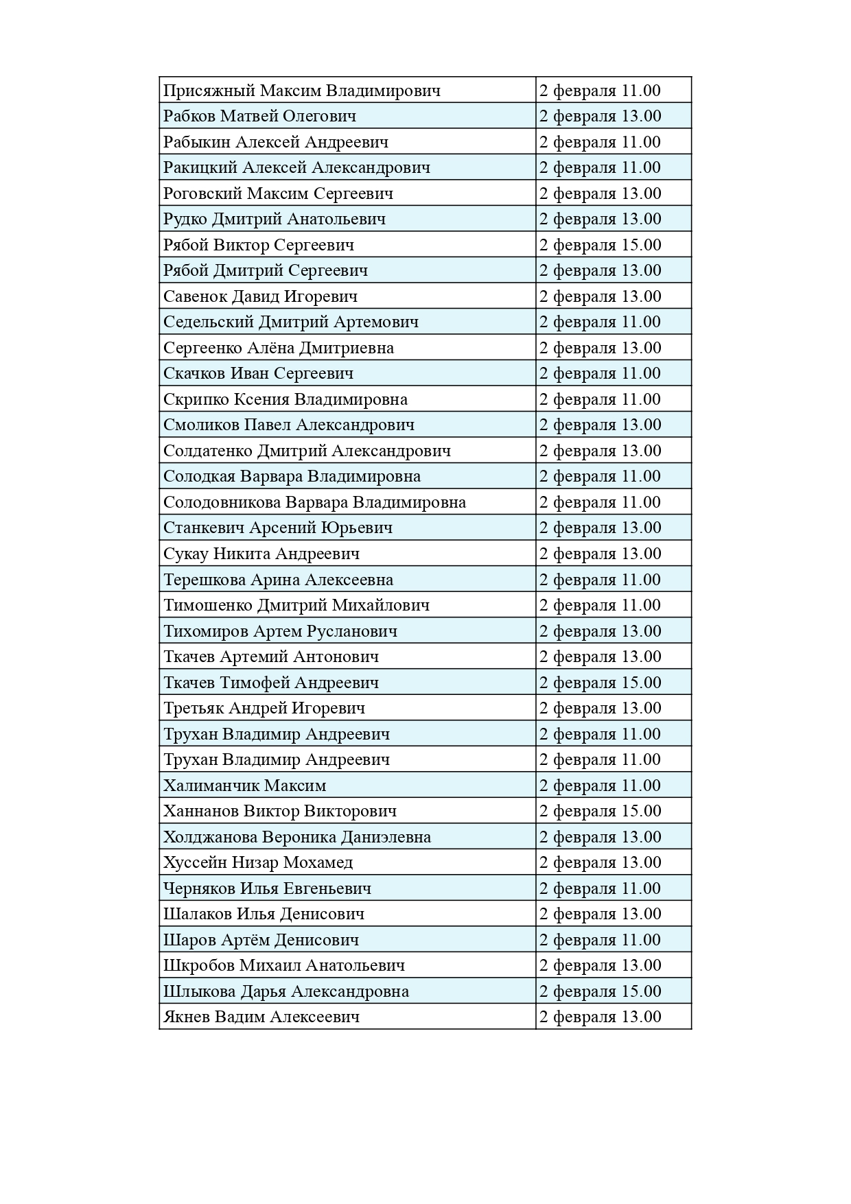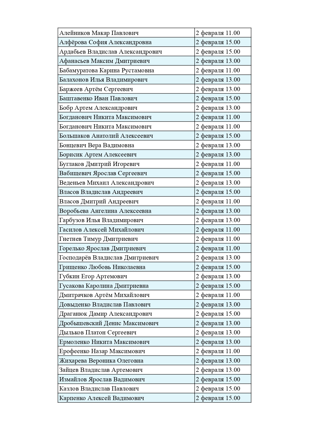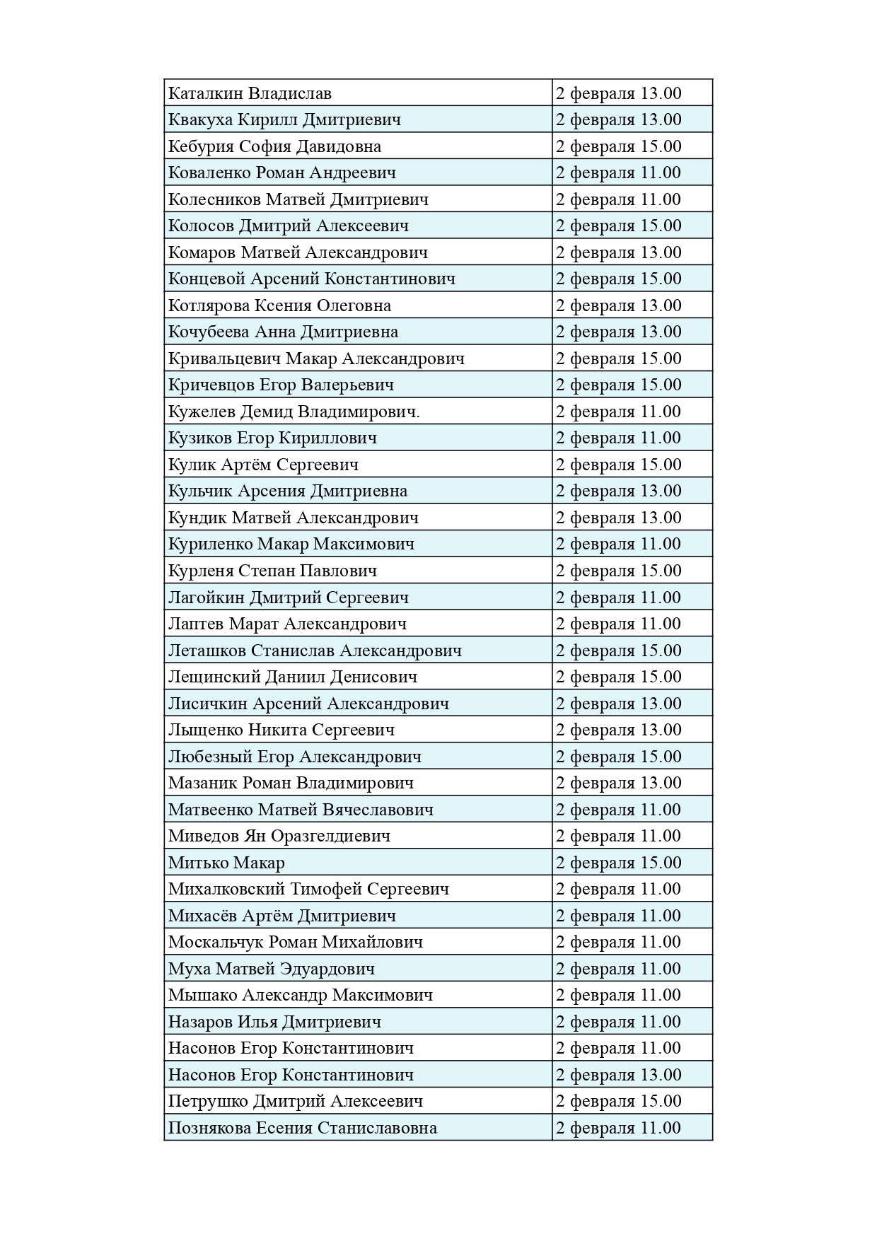 Ниже можно просмотреть списки с указанием времени аттестации для каждого претендента на получение жёлтого пояса.